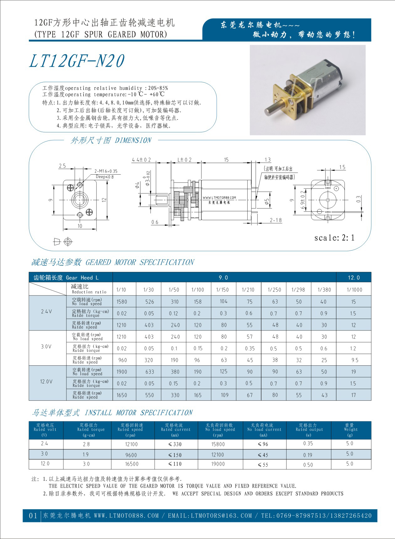 Product Name: LT12GF-N20 DC GEARED MOTOR